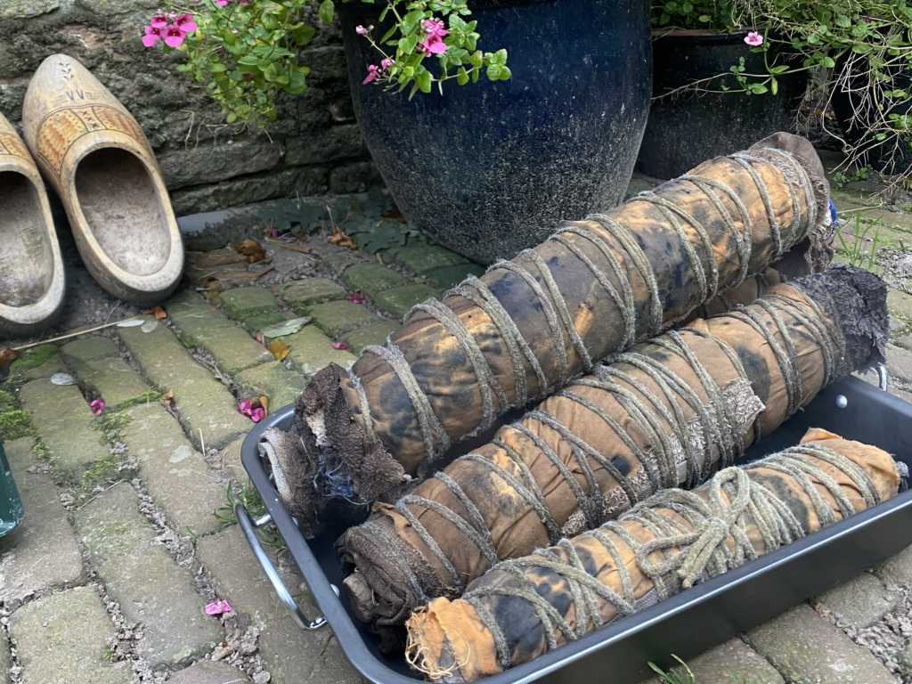 Botanisch printen is een techniek om met bloemen en bladeren stoffen en andere materialen te bedrukken, op een manier die zo min mogelijk milieubelastend is. Wij zijn in 2019 begonnen met het botanisch printen, ook wel ecoprinten genoemd.